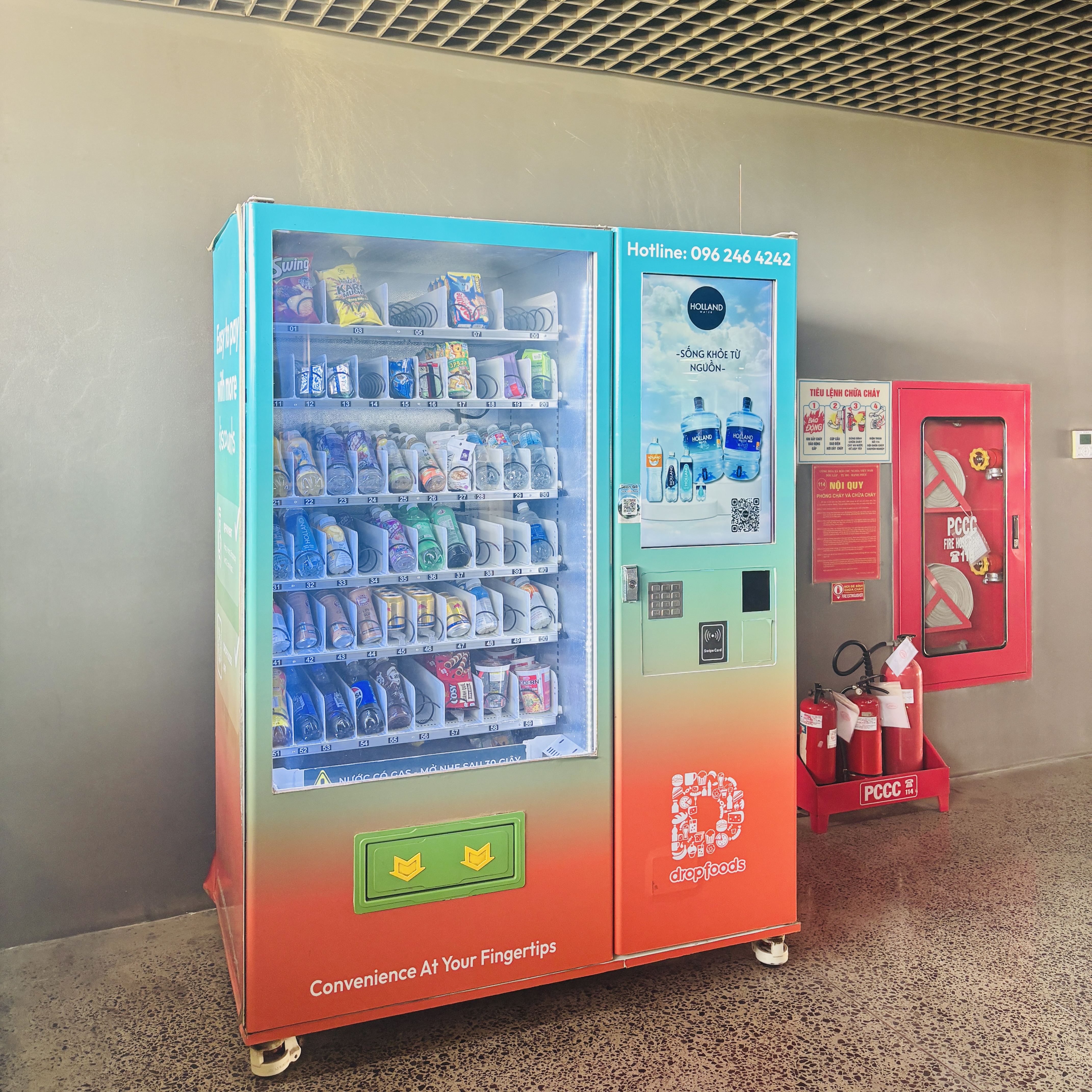 Dropfoods is a reputable smart vending machine supplier in the Vietnam market, meeting all the business needs of customers. Along with that, Dropfoods also provides other services such as installation, troubleshooting, operation, maintenance, vending machine maintenance and periodic loading of goods.